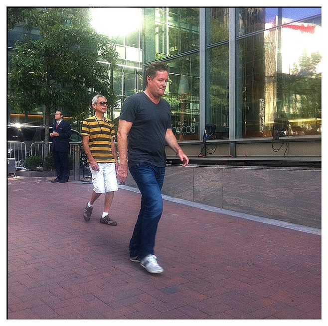 Piers Morgan walks down a Charlotte street. Do you think Larry King would have recognized him? by Mickey Osterreicher