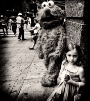The Muppet is so much larger than the child. Surreal is the word, I think.