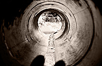 It's true, first time up the tube is really strange and kind of scary because you can't see a thing. JP is dispensing the soap and our job is to splash water on the sides of the walls to make the run as fast as possible. When you get to the top flat section it's time for a rest and stretch, there is a manhole letting some light in but it's still very cramped. I think it was Marvin that decided to go first, JP pushes him off with his legs. The sound of someone moving down that slippery tube is hard to describe but my thoughts turned to figuring out a way to pop that manhole cover and walk away from the whole damn thing!