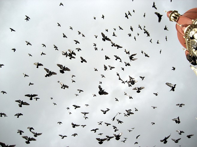 This is a fabulous example of a one vs many type of composition. Personally I have difficulty creating good images with "many", eg many pigeons in this case. Well done.