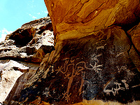 The Glyphs were absolutely remarkable, as I documented all that I could find. Sadly 90% of the glyphs were damaged from dust, modern graffiti and bullet holes. It was devastating to come across such beautiful ancient art with: "Persons Name 1885" carved next to or on top of a beautiful pictograph. Bullet holes are in more than 90% of the glyphs, most of which I tried to avoid in my photos. Some I simply had to remove as they destroyed the glyphs completely.