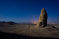 One of the Trona Pinnacles with the road leading out, the town of Trona, CA, and it's mining operation seen in the distance. From here one can easily imagine the perspective of a future astronaut looking back to his lunar base.