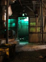 Photo taken inside an abandoned rehabilitation center with a bowling alley.