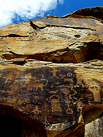 The Glyphs were absolutely remarkable, as I documented all that I could find. Sadly 90% of the glyphs were damaged from dust, modern graffiti and bullet holes. It was devastating to come across such beautiful ancient art with: "Persons Name 1885" carved next to or on top of a beautiful pictograph. Bullet holes are in more than 90% of the glyphs, most of which I tried to avoid in my photos. Some I simply had to remove as they destroyed the glyphs completely.